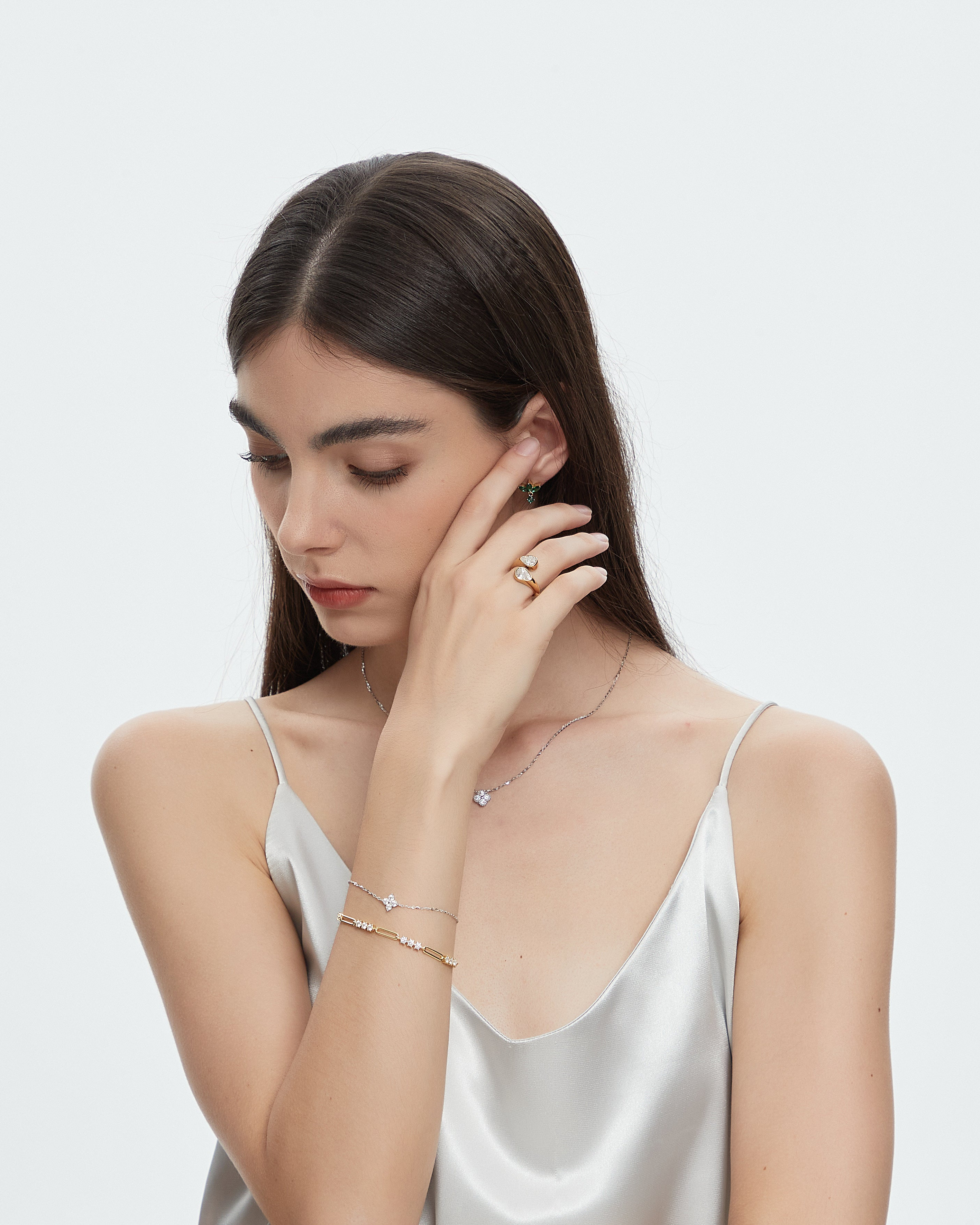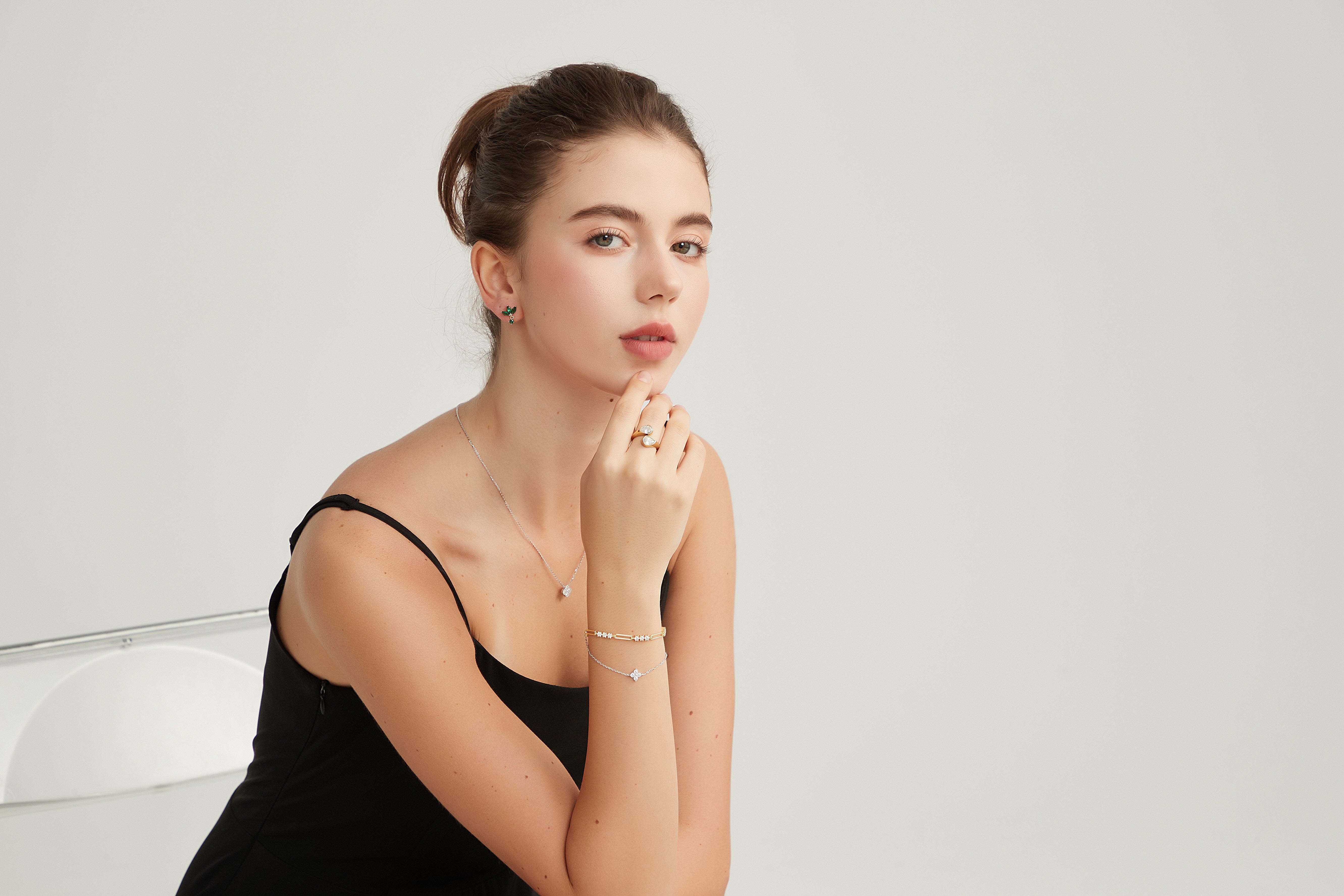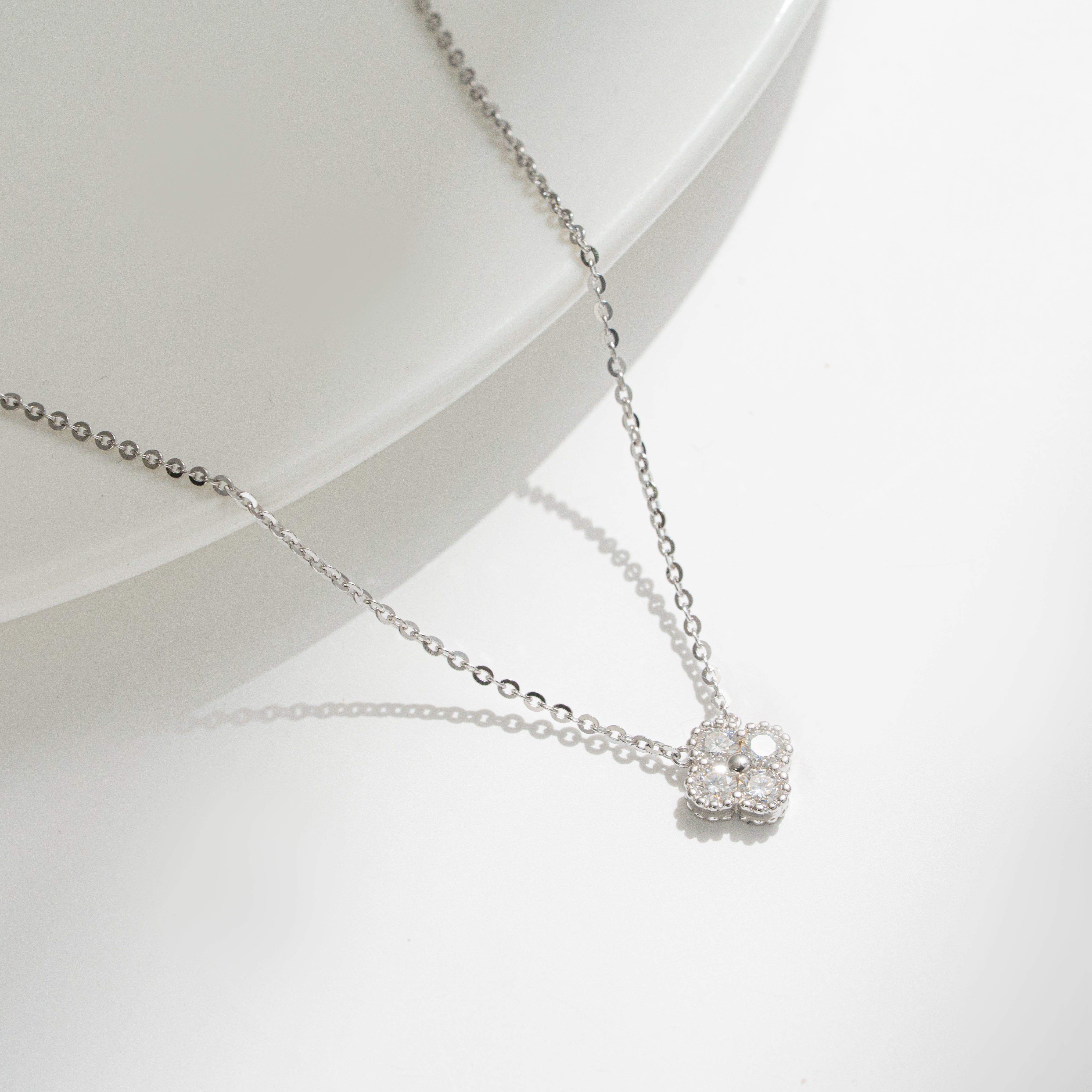 Four-Leaf Clover Pendant in Sterling Silver, Set with D-Color Moissanite for Brilliant Sparkle